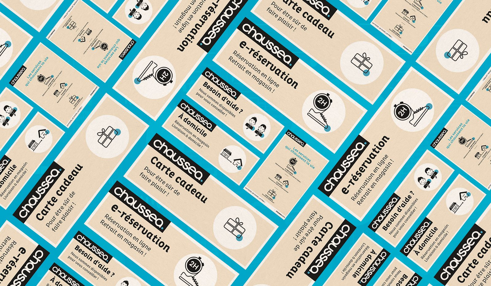 L’idée est de mettre en avant les services Chaussea comme le ”à domicile” à travers des supports simples, mais aussi de faciliter les achats clients. L’ensemble de la nouvelle charte est dans un premier temps testée dans le magasin test à Saint-Marie. Ce qui permet d’ajuster et d’améliorer la nouvelle direction artistique avant de la déployer dans l’ensemble des 360 magasins français ainsi qu’à l’étranger (Italie, Suisse, Belgique, Espagne). La finalité ? La création du Brand Book de la marque comme référence pour chaque communication et chaque ouverture de magasin. Une réussite et une simplification qui a fait ses preuves !