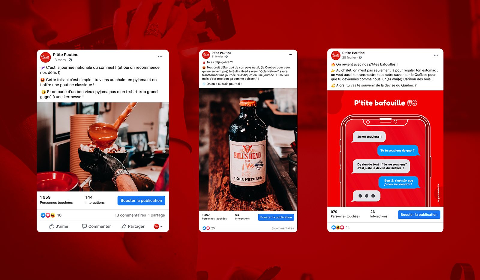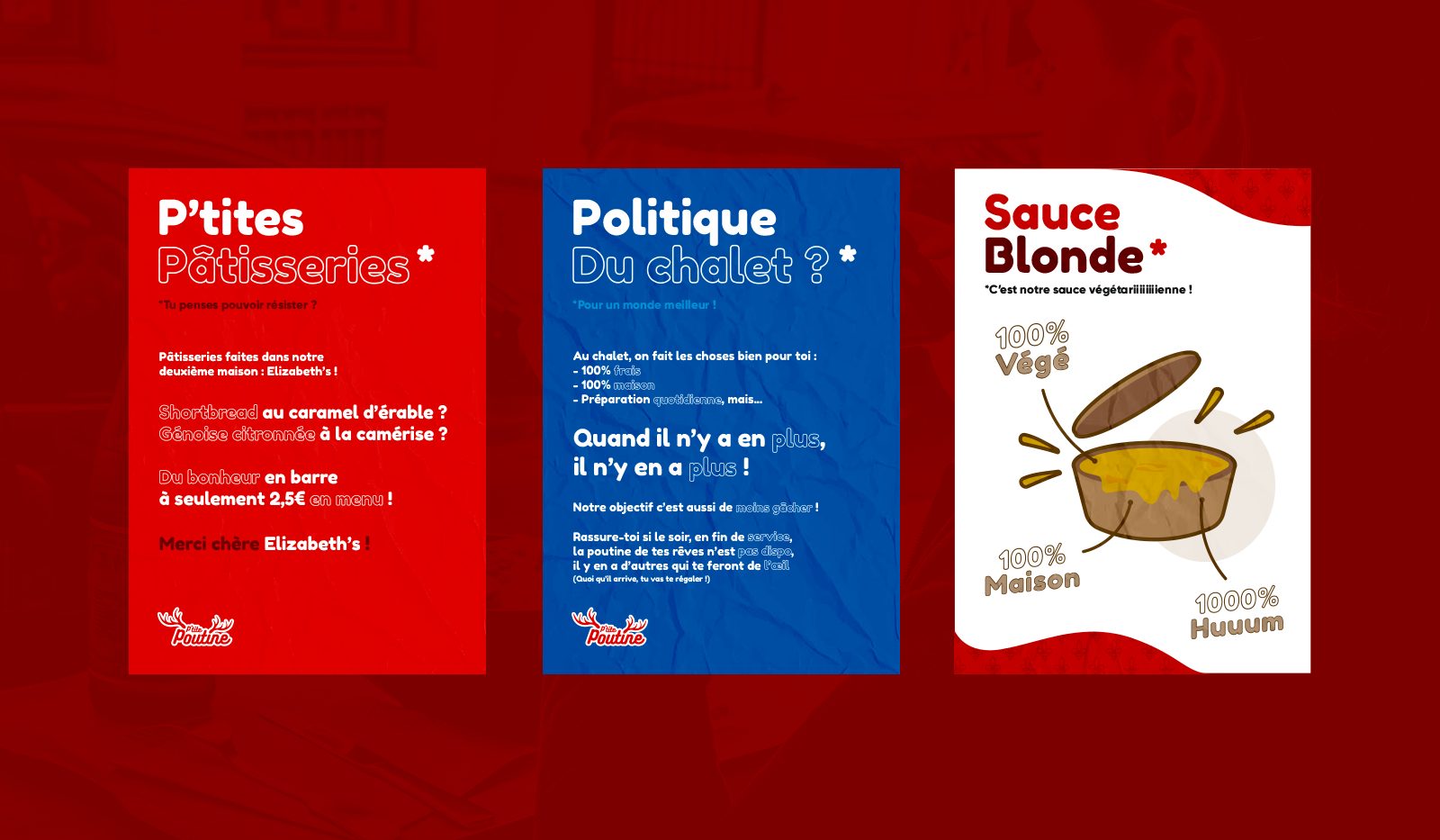 Créer un nouvel univers visuel reconnaissable par tous et attirer les nouveaux clients, c’était le défi P’tite Poutine. Grâce au produit qui est déjà exceptionnel (il faut le dire), je parle de la poutine, le travail était déjà ”simplifié”. L’idée était simple : attirer, communiquer et fidéliser.
